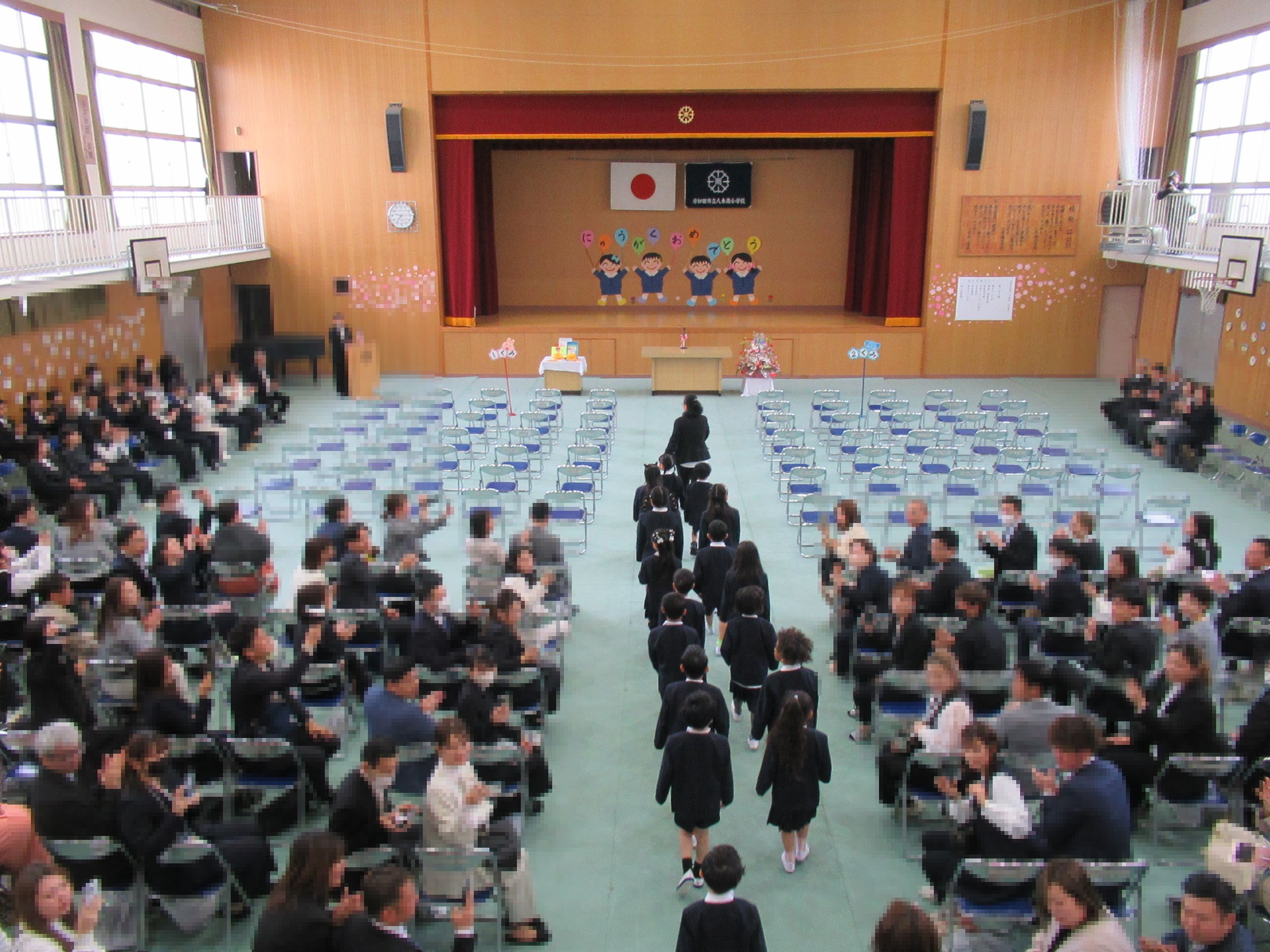 大きなランドセルに夢や希望をいっぱいつめて元気に登校してくる子どもたち。ワクワクドキドキの気持ちが心の中に広がっていることでしょう。65名の1年生全員がそろって入学式を迎えることができ、本当にうれしく思います。今日から始まる小学校生活。ご家庭と学校が協力して子ども達をしっかり見守っていきたいと思います。どうぞよろしくお願いします。