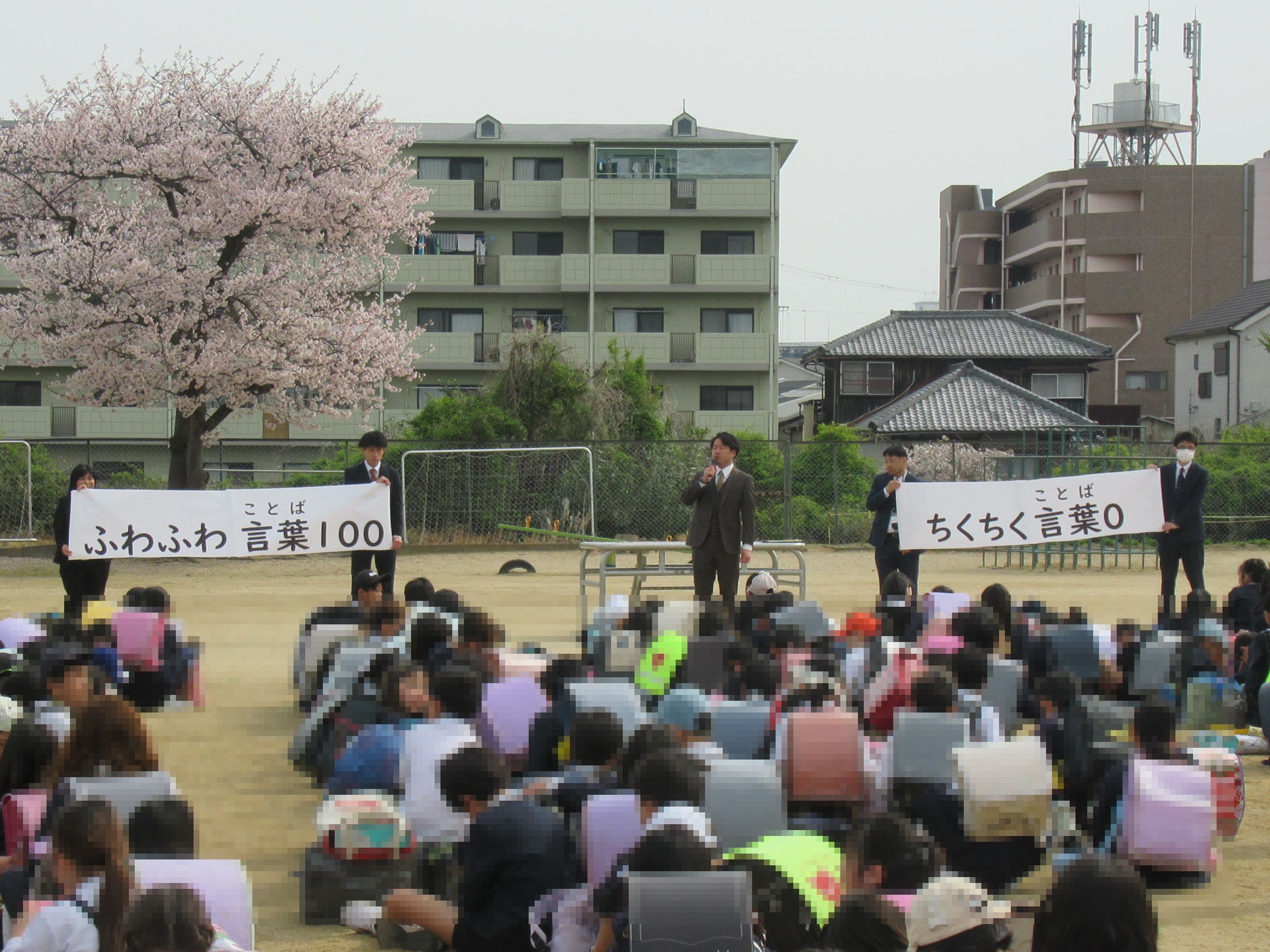 4月8日(火) 穏やかな日差しのもと、令和7年度の始業式を行いました。今年度もクラス発表と始業式は運動場で行いました。 今朝、子どもたちは「先生は誰かな・・・誰と同じクラスかな・・・」とワクワクドキドキしながら登校したことでしょう。新しい出会いを大切に今年一年間、楽しく実りの多い日々を過ごしてほしいと思います。保護者の皆様、今年度もどうぞよろしくお願いいたします。